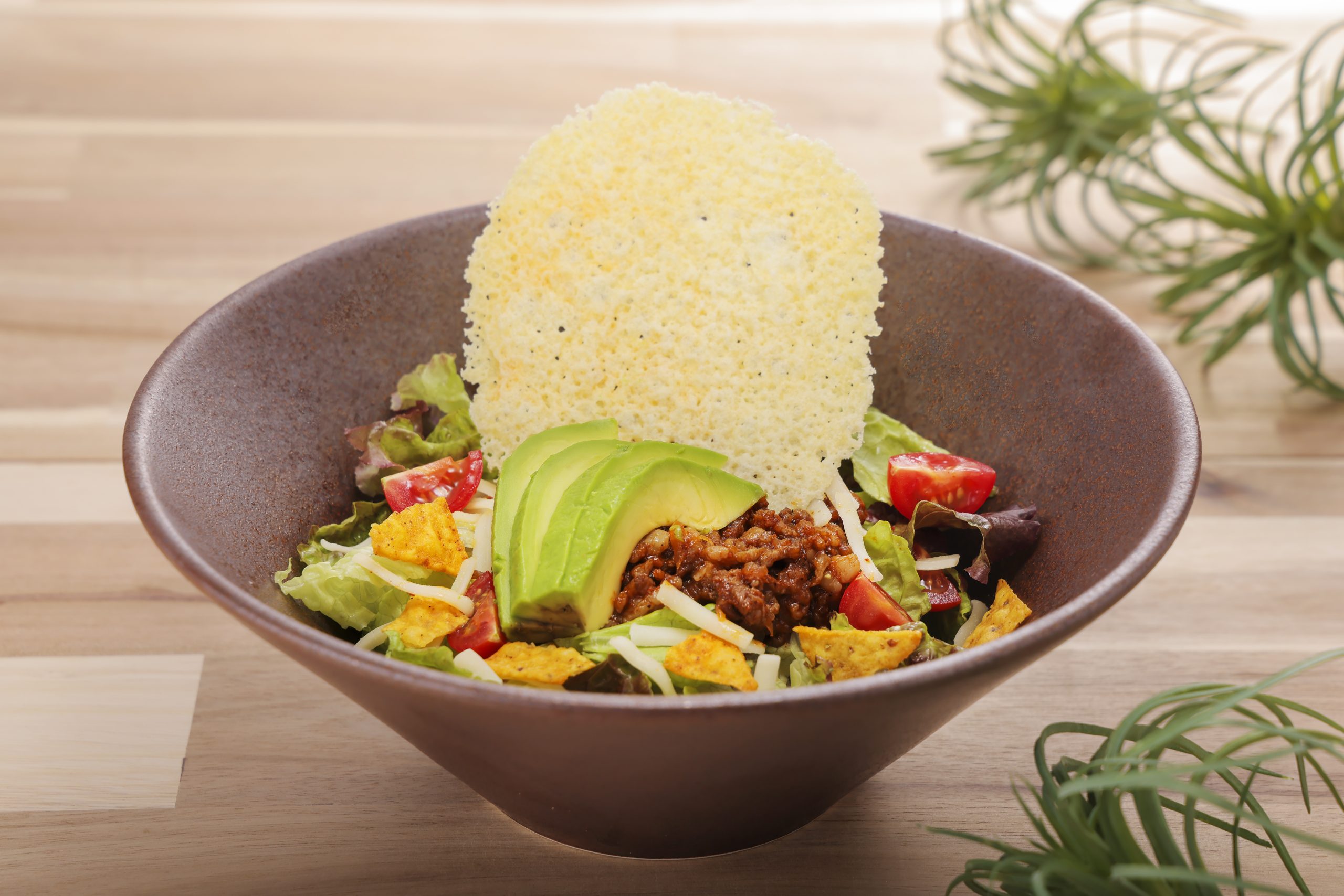 16穀米に和牛のタコミートとたっぷりのサラダをトッピングしたライスボウルです。